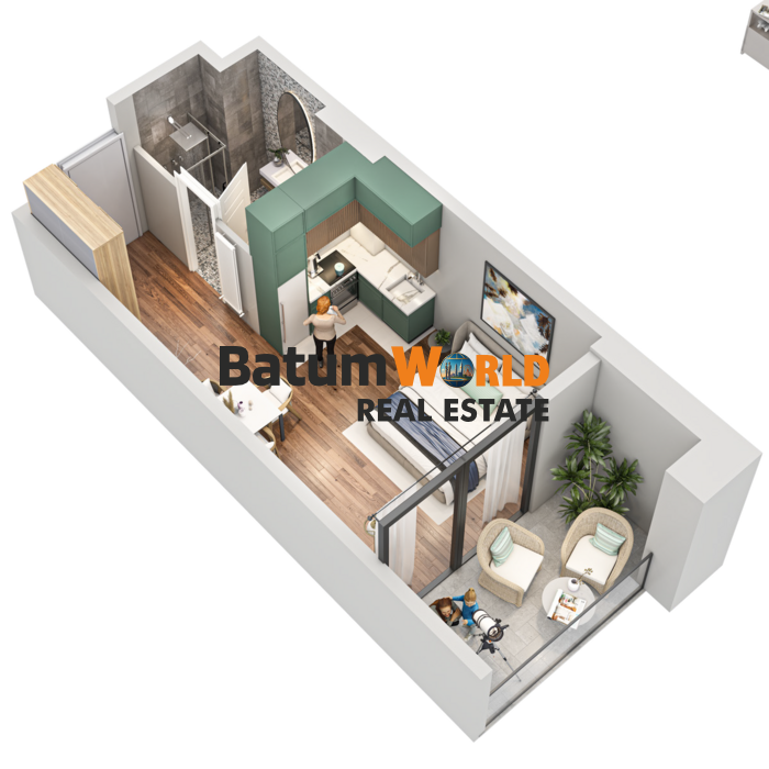 İçinde bulunan şık bir stüdyo daireyi keşfedin Tekto Franco'nun, Makhinjauri'nin yemyeşil ortamında, Batum'a sadece birkaç dakika uzaklıkta yer alan modern bir yerleşim bölgesi. Karadeniz kıyısına sadece 100 metre uzaklıkta ve yeşilliklerle çevrili Tekto Franco, sakin yaşamı güçlü yatırım potansiyeli ile birleştiriyor.